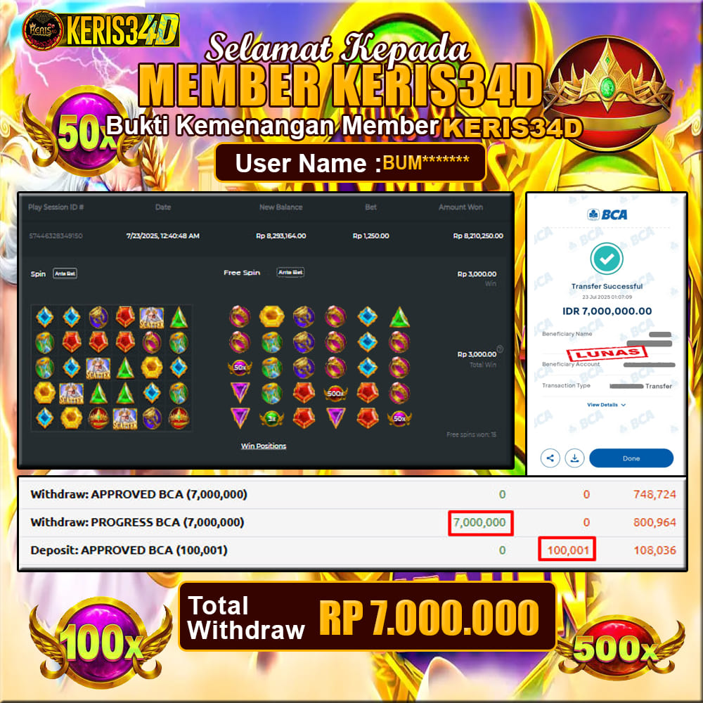 Setiap hari, member KERIS34D berhasil meraih jackpot besar dari berbagai provider slot ternama yang kami sediakan, seperti Pragmatic Play, Habanero, PG Soft, dan masih banyak lagi. Kami secara rutin menampilkan bukti screenshot atau rekapan kemenangan yang berhasil diraih, mulai dari kemenangan ratusan ribu hingga puluhan juta rupiah. Semua slip kemenangan ini kami hadirkan untuk membuktikan bahwa di KERIS34D, peluang menang itu nyata