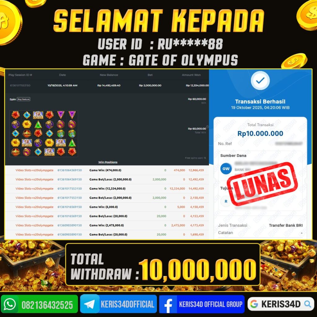 JACKPOT SLOT GACOR GATES OF OLYMPUS 19 OKTOBER 2025, Jackpot Slot Gacor, Kemenangan Slot, Bukti Kemenangan Slot, Kemenangan PRAGMATIC PLAY, Menang Slot online, Slot Gacor, Situs Aman Terpercaya, WD Berapapun Pasti DI Bayar Tuntas, Maxwin Slot Online.