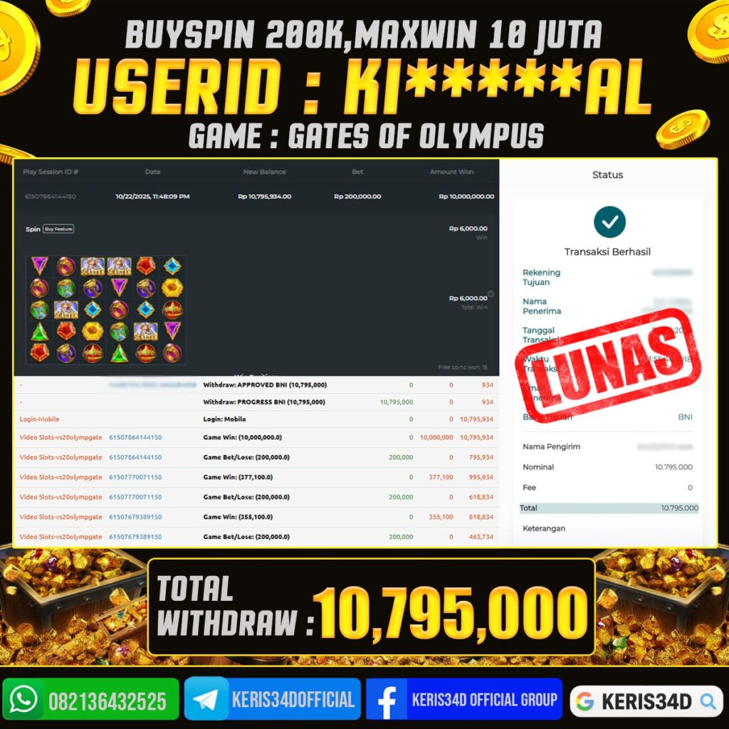 KERIS34D dikenal sebagai situs terpercaya yang selalu menghadirkan pengalaman bermain slot online yang aman, fair, dan berlisensi resmi. Di sini, kami tidak hanya sekadar memberikan janji, tapi bukti nyata berupa slip kemenangan yang dapat Anda lihat secara langsung.