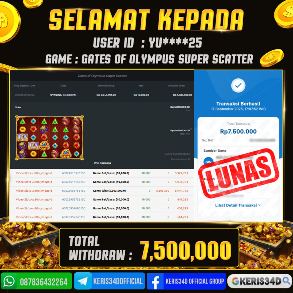 JACKPOT SLOT GACOR GATES OF OLYMPUS SUPER SCATTER 17 SEPTEMBER 2025, Jackpot Slot Gacor, Kemenangan Slot, Bukti Kemenangan Slot, Kemenangan PRAGMATIC PLAY, Menang Slot online, Slot Gacor, Situs Aman Terpercaya, WD Berapapun Pasti DI Bayar Tuntas, Maxwin Slot Online.