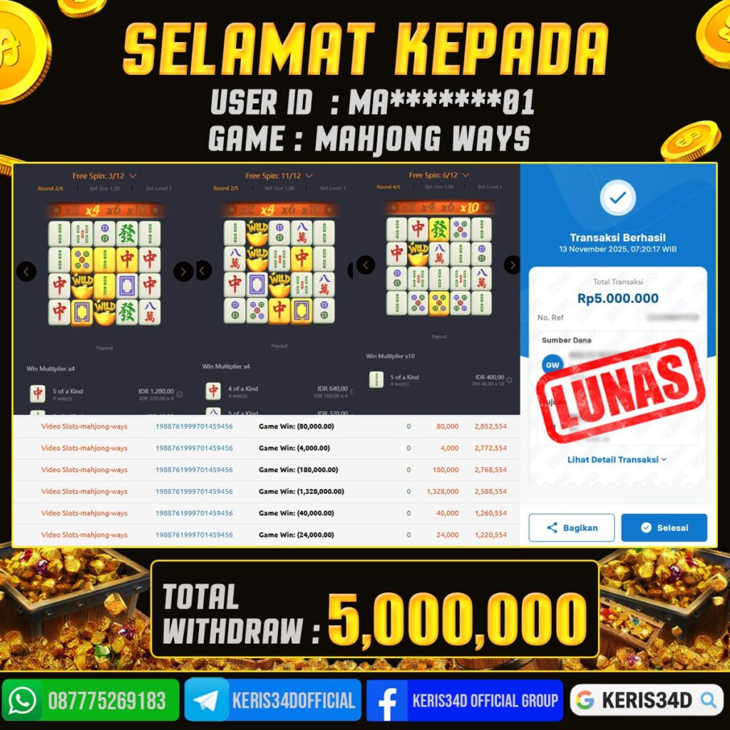 JACKPOT SLOT GACOR MAIN MAHJONG WAYS 13 NOVEMBER 2025, Jackpot Slot Gacor, Kemenangan Slot, Bukti Kemenangan Slot, Kemenangan PGSOFT, Menang Slot online, Slot Gacor, Situs Aman Terpercaya, WD Berapapun Pasti DI Bayar Tuntas, Maxwin Slot Online.
