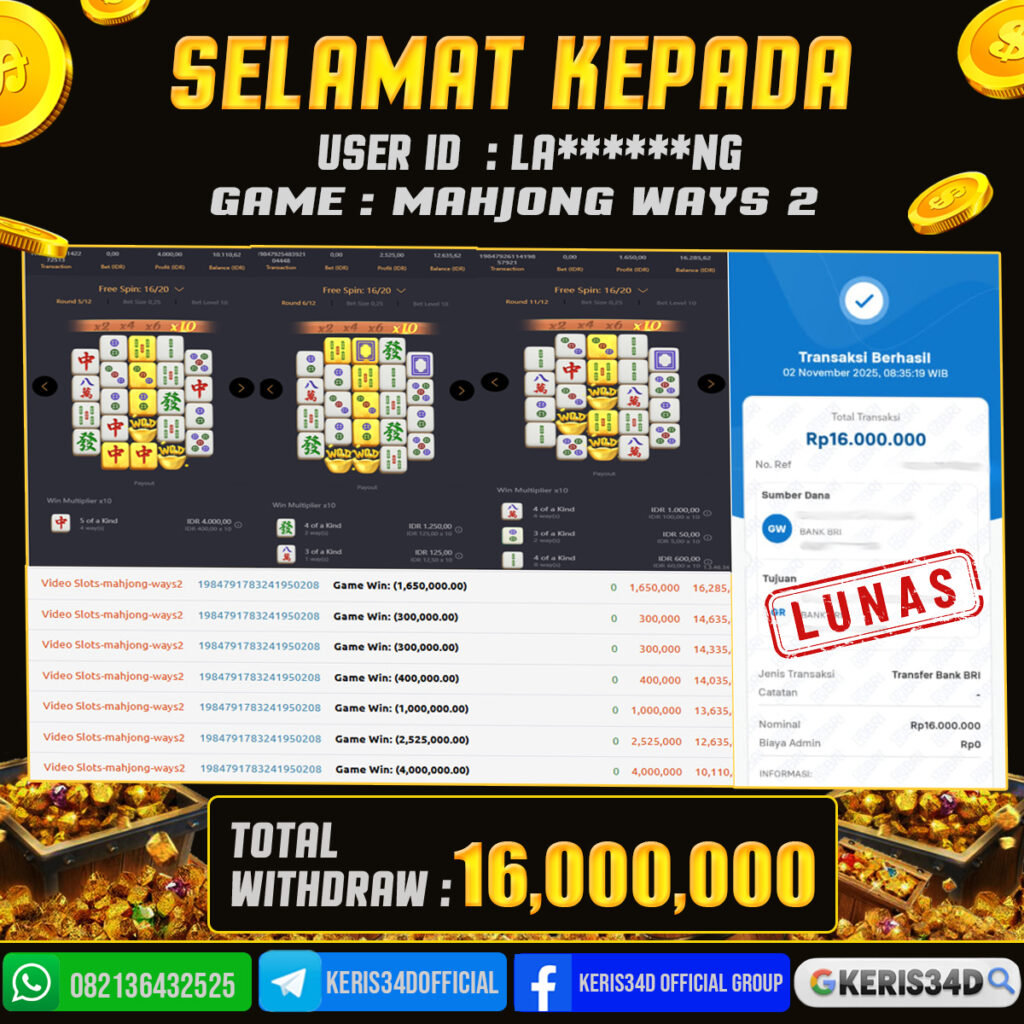 TOTAL KEMENANGAN : Rp. 16.000.000