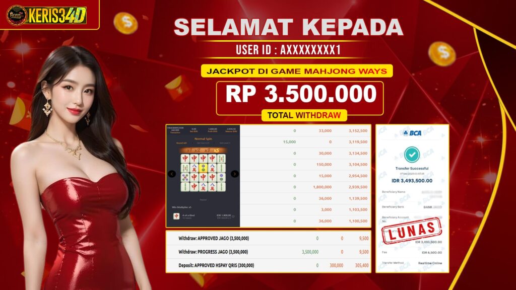 KERIS34D dikenal sebagai situs terpercaya yang selalu menghadirkan pengalaman bermain slot online yang aman, fair, dan berlisensi resmi. Di sini, kami tidak hanya sekadar memberikan janji, tapi bukti nyata berupa slip kemenangan yang dapat Anda lihat secara langsung.