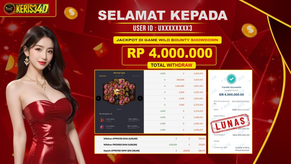 KERIS34D dikenal sebagai situs terpercaya yang selalu menghadirkan pengalaman bermain slot online yang aman, fair, dan berlisensi resmi. Di sini, kami tidak hanya sekadar memberikan janji, tapi bukti nyata berupa slip kemenangan yang dapat Anda lihat secara langsung.
