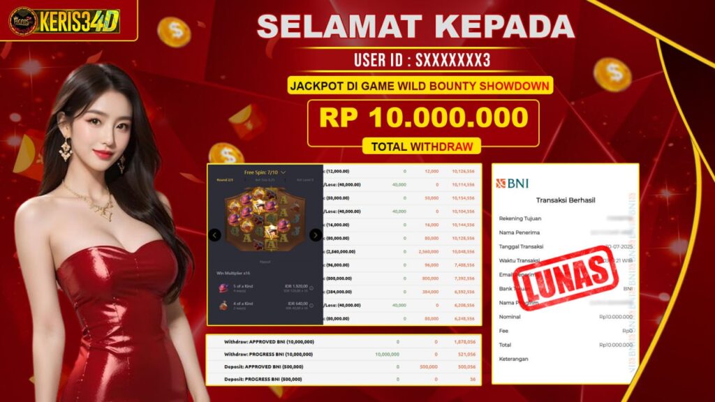 KERIS34D dikenal sebagai situs terpercaya yang selalu menghadirkan pengalaman bermain slot online yang aman, fair, dan berlisensi resmi. Di sini, kami tidak hanya sekadar memberikan janji, tapi bukti nyata berupa slip kemenangan yang dapat Anda lihat secara langsung.